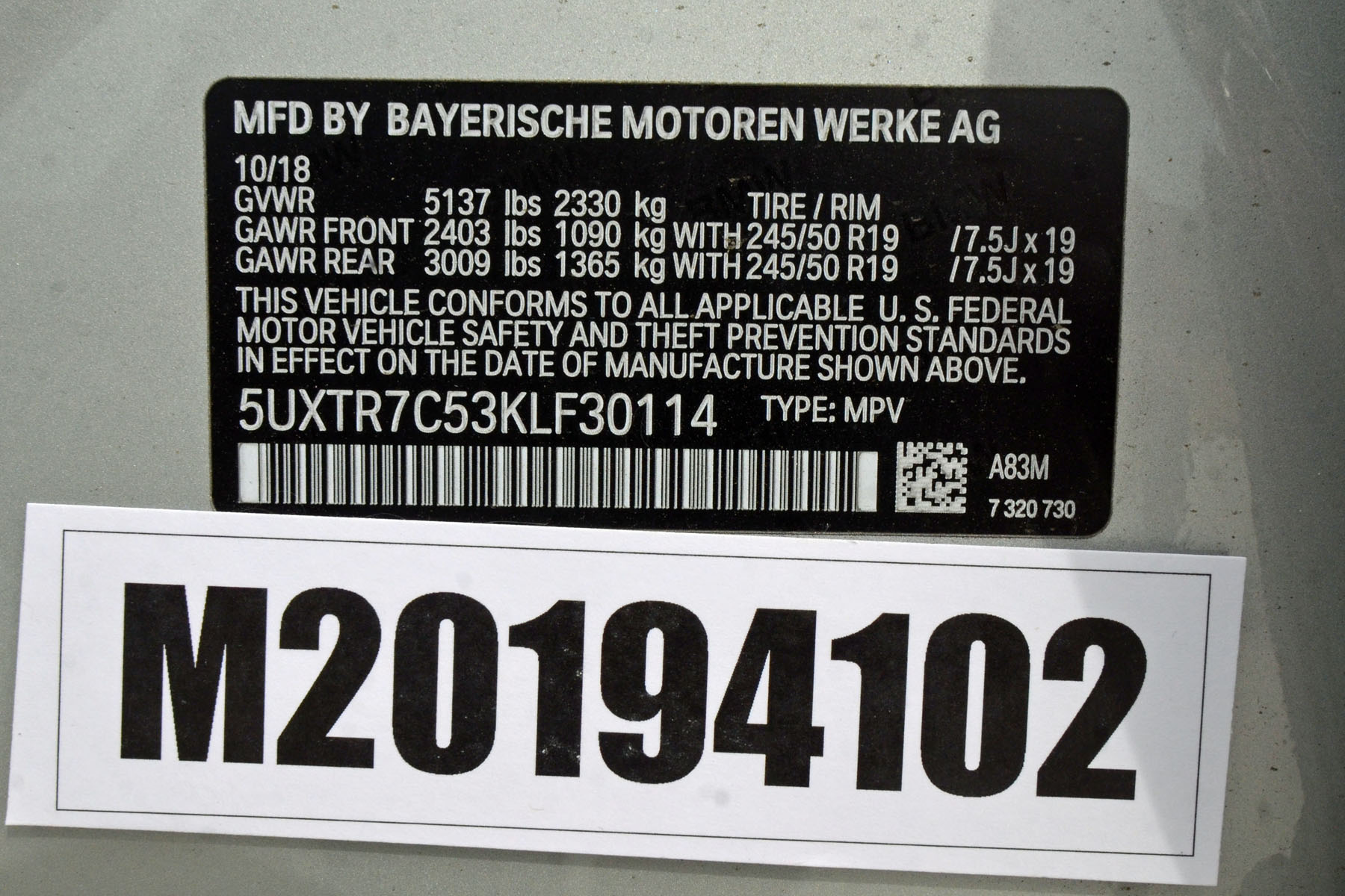 - M20194102TWG2 2019 BMW X3