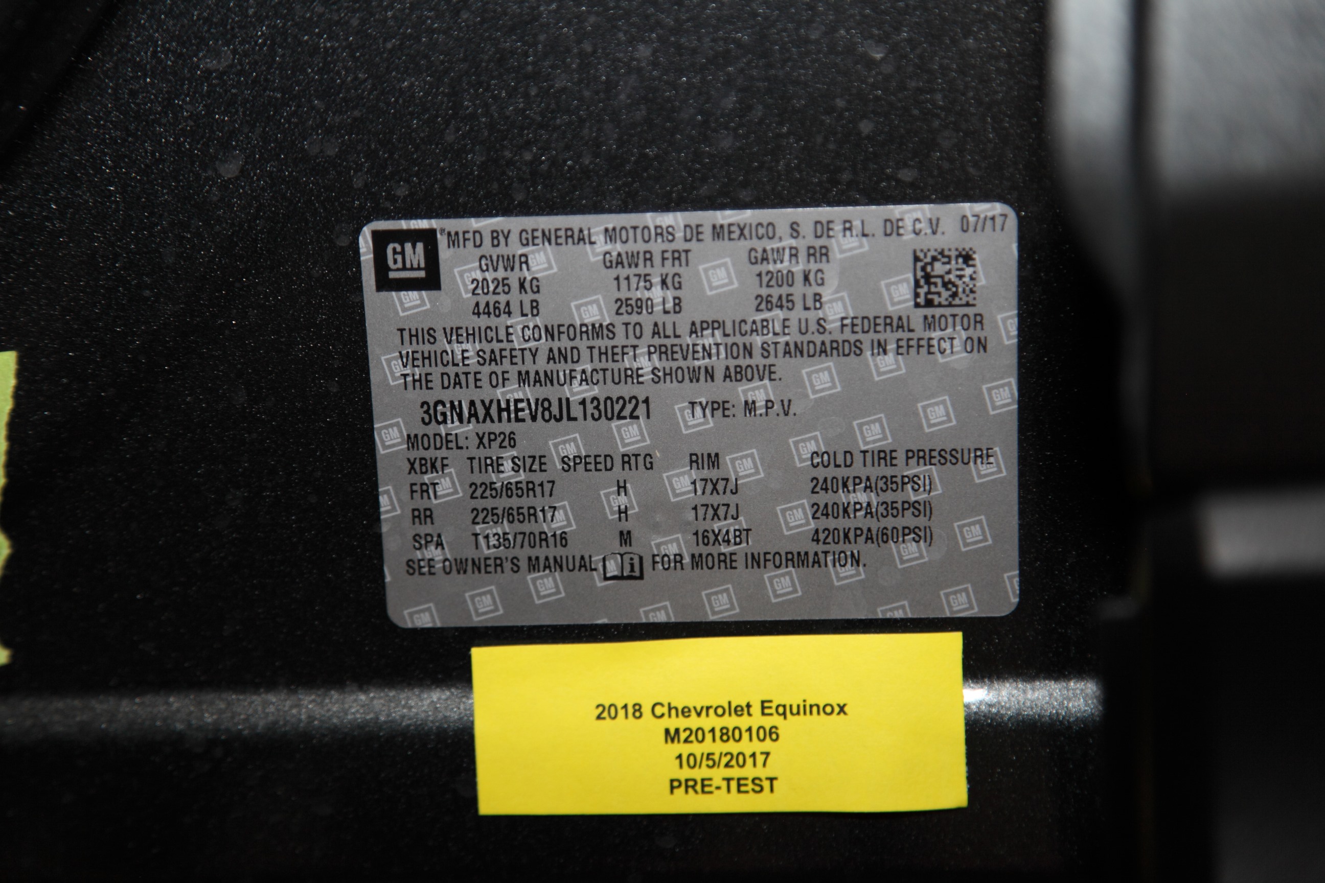 2018 CHEVROLET EQUINOX STATIC SAB OOP TES