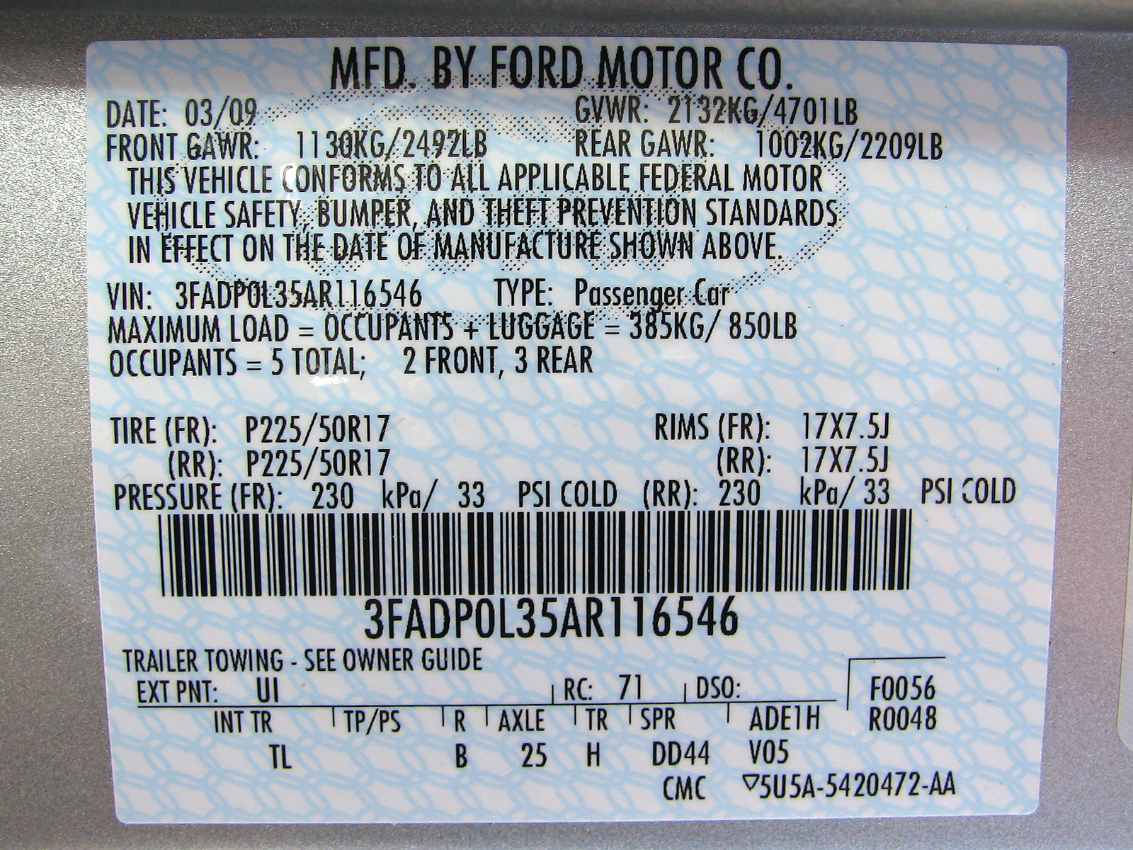 35 MPH NCAP FRONTAL - 2010 FORD FUSION HY