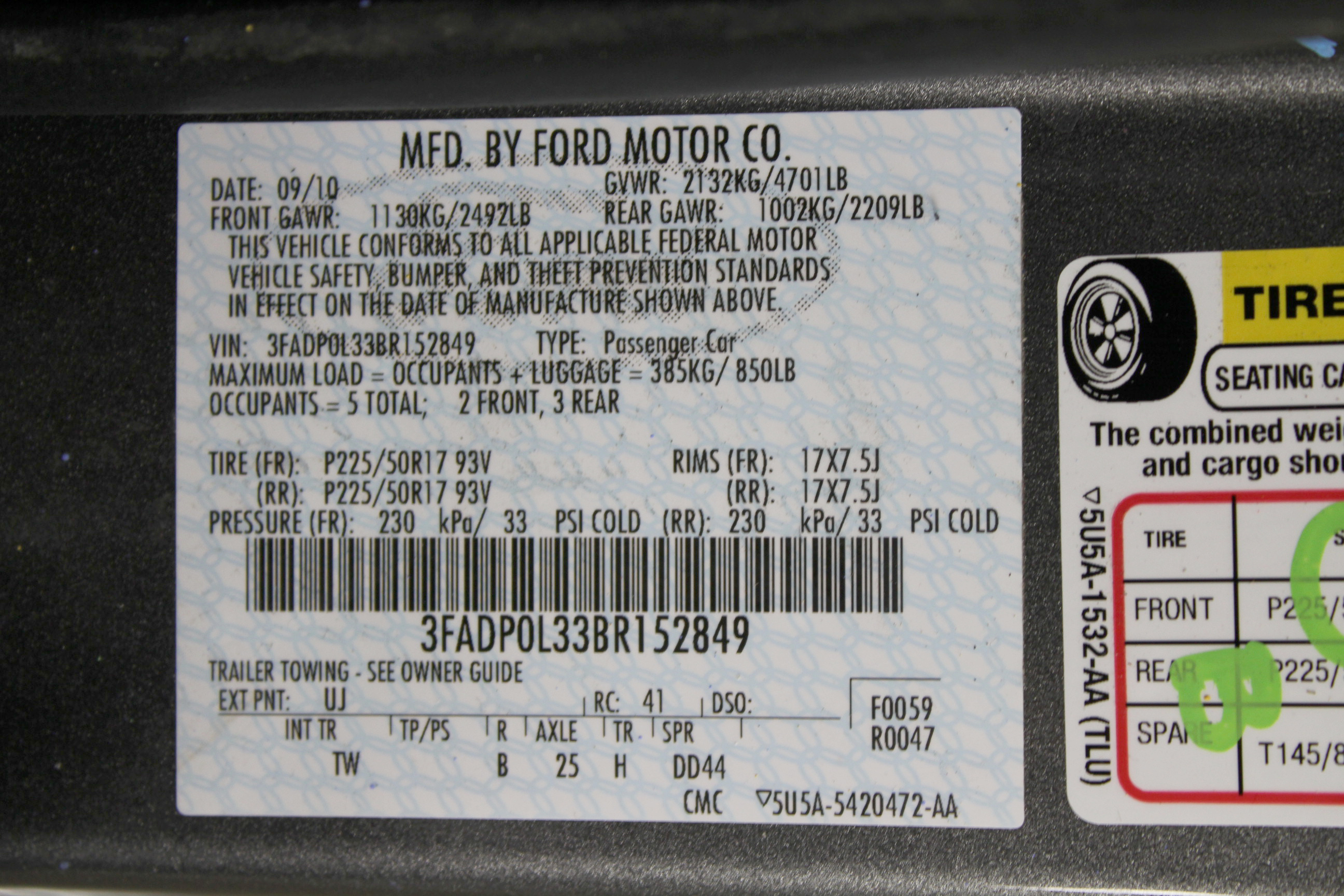 - MB0224 2011 Ford Fusion H