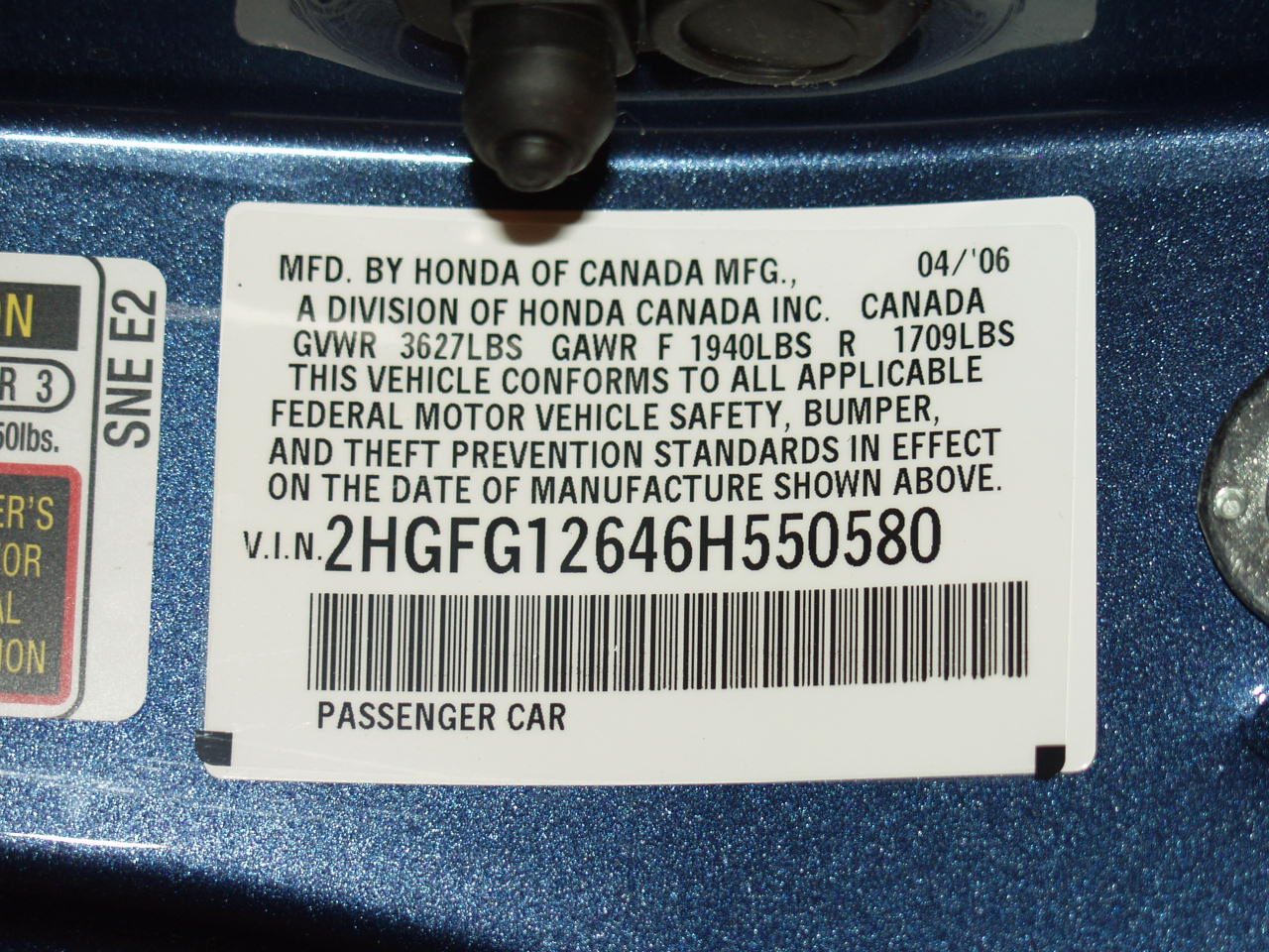 Vehicle page: 2006 HONDA CIVIC