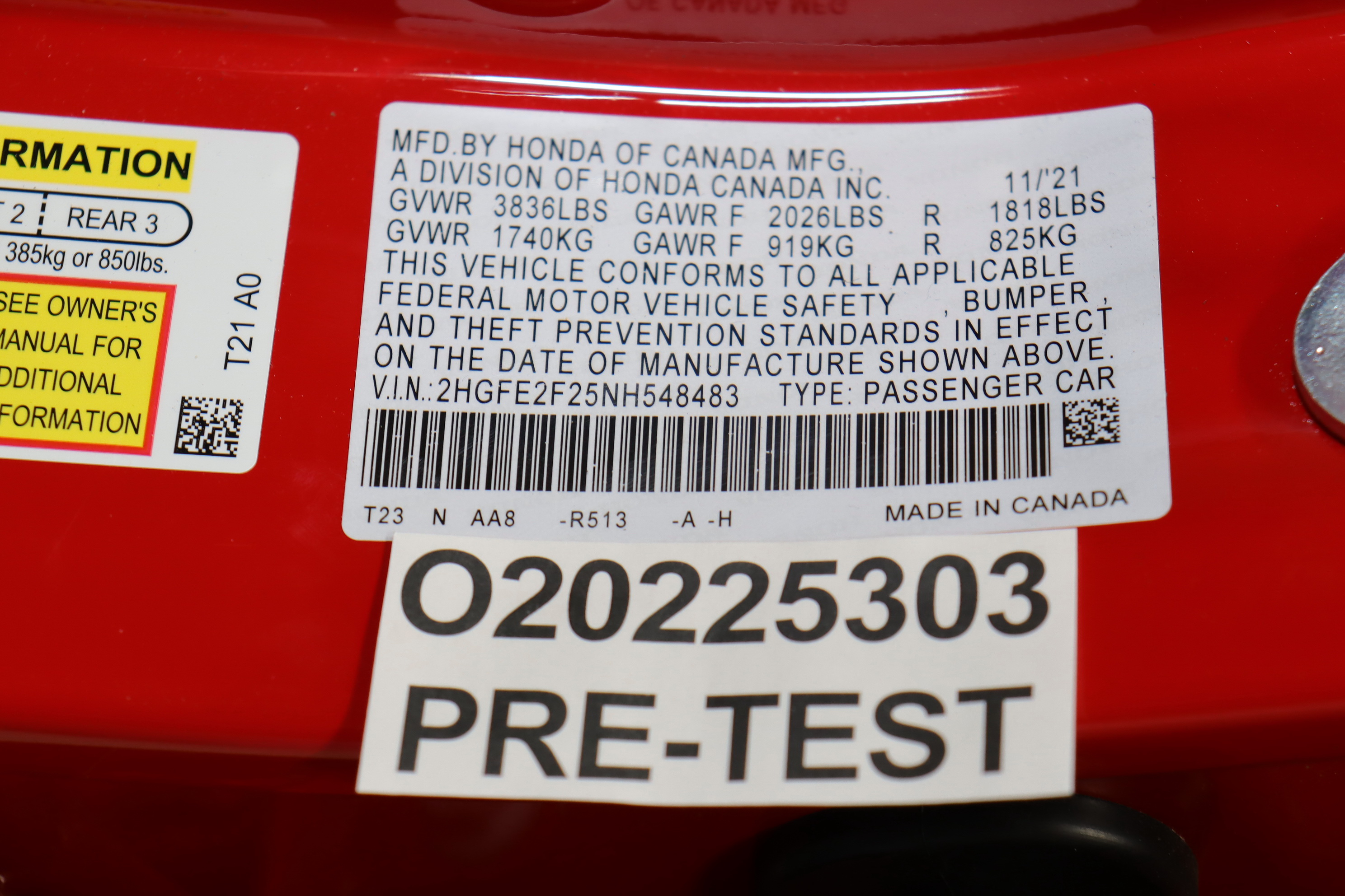 - O20225303 2022 Honda Civi