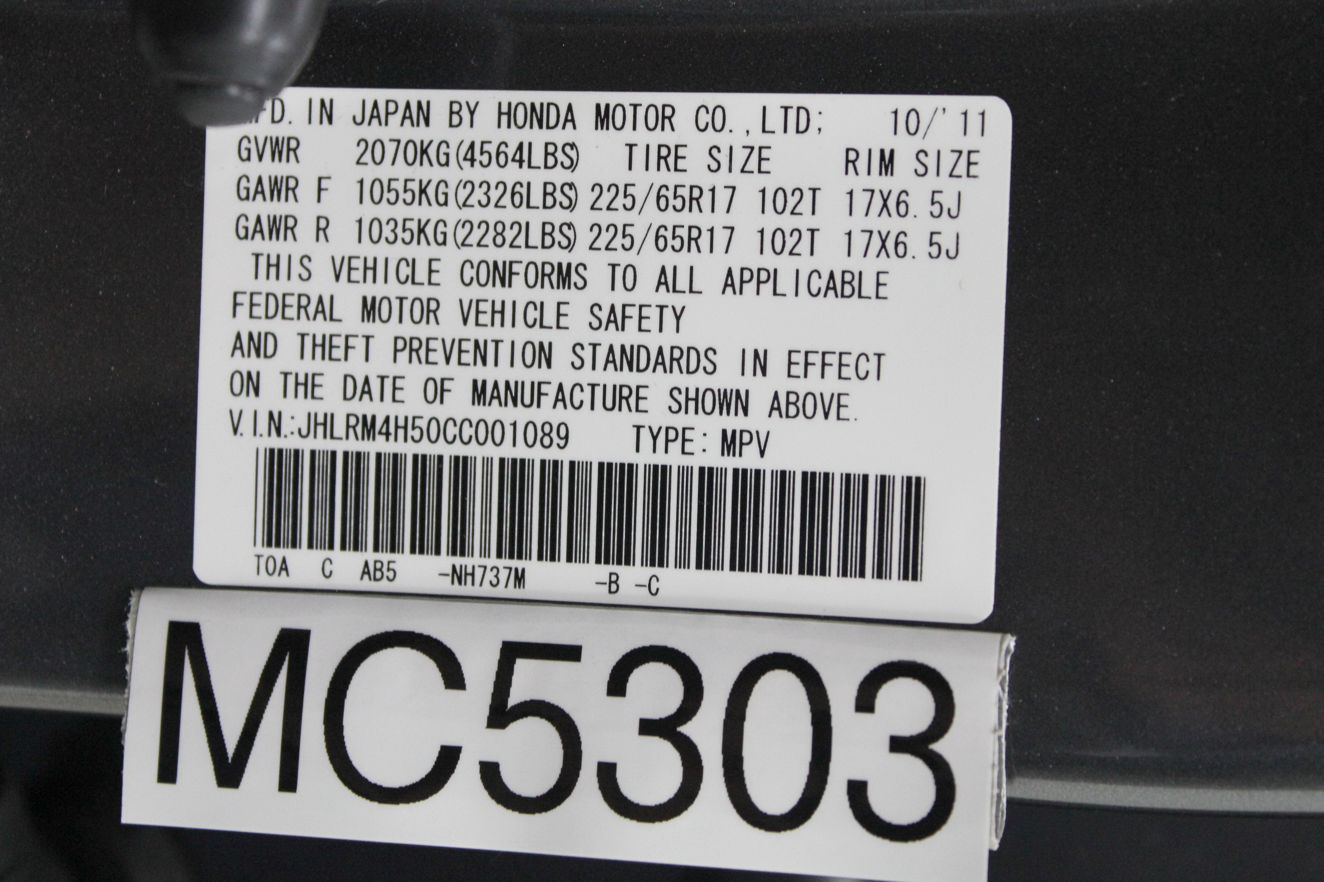 - MC5303 2012 Honda CR-V AW
