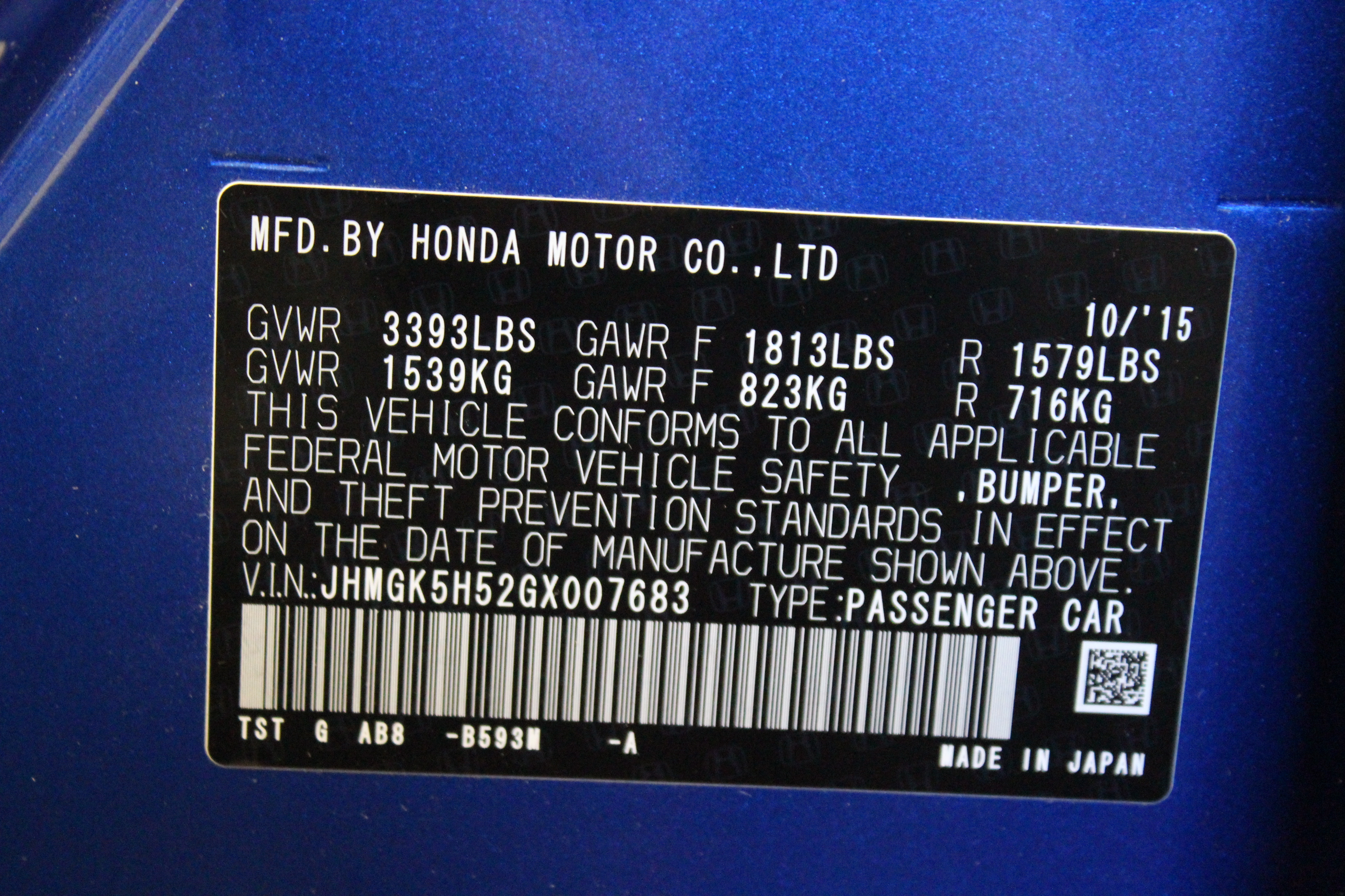 Nearby VIN Numbers: JHMGK5H54GX026459 |
