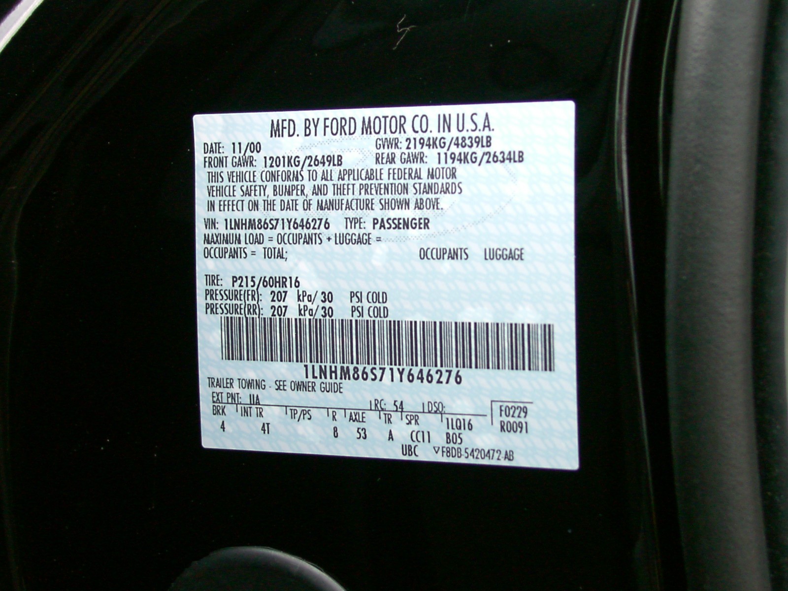NCAP SIDE IMPACT - 2001 LINCOLN LS 4 DOOR