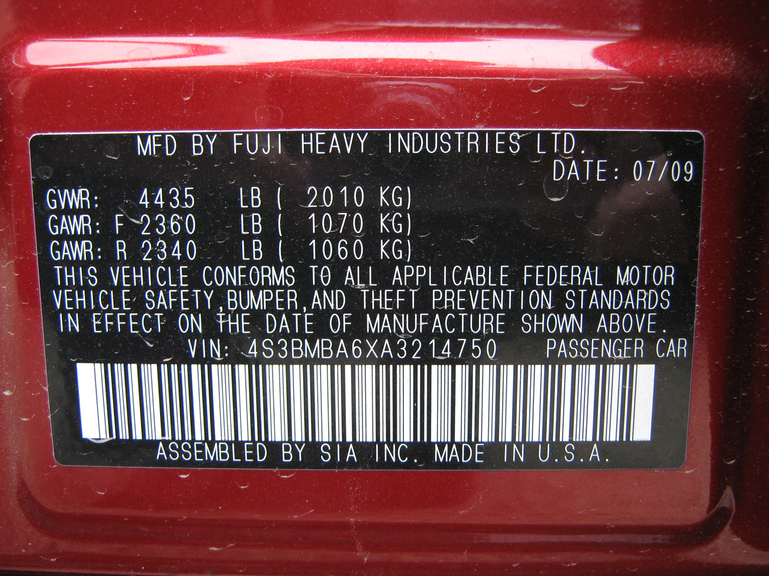 - 2010 Subaru Legacy MA5500