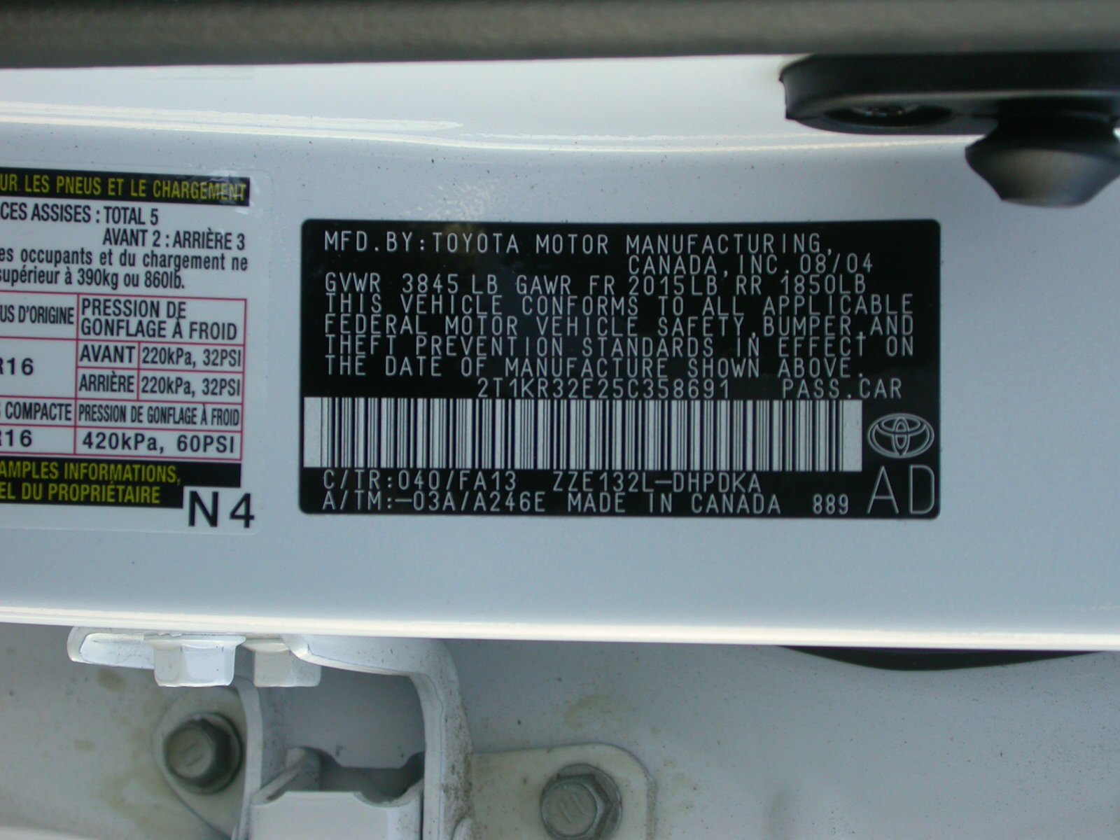Nearby VIN Numbers: 2T1KR32E76C585585 | 2T1KR32E86C613183 |